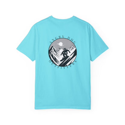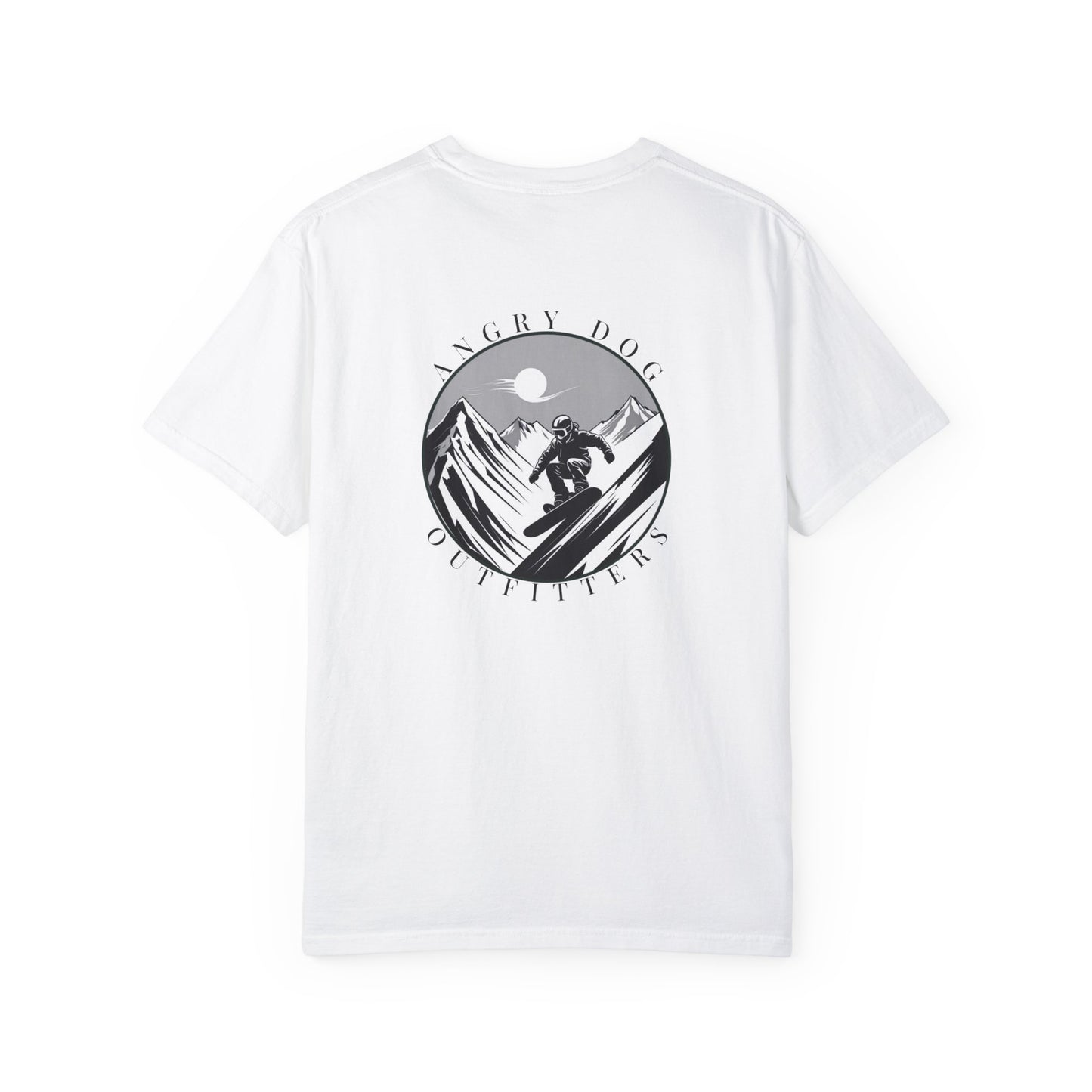 Carve up the mountain in style wearing our new Powder Shredder Tee, featuring a rad snowboarder catching big air on a fresh powder day. Made from soft, garment-dyed 100% ring-spun cotton, this cool top will keep you warm and comfortable on and off the slopes with its long sleeves and relaxed fit. Whether you're hitting the terrain park or just looking cool, this tee brings the adventurous snowboarding vibes wherever you roam.
